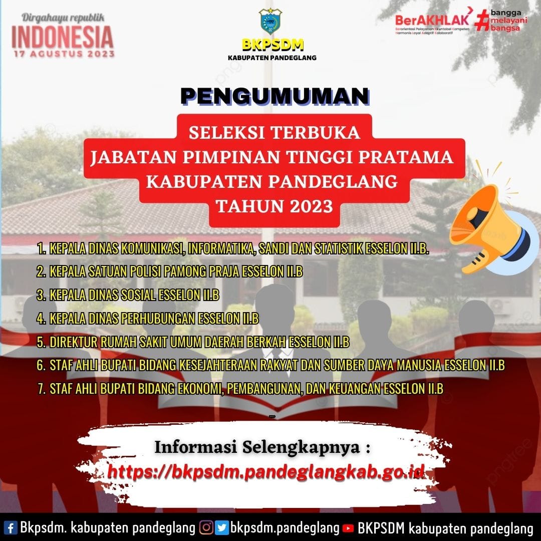 Read morePENGUMUMAN PENETAPAN HASIL SELEKSI CALON PEJABAT PIMPINAN TINGGI PRATAMA KABUPATEN PANDEGLANG TAHUN.